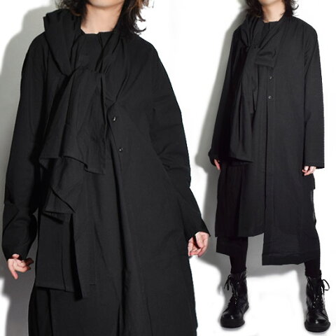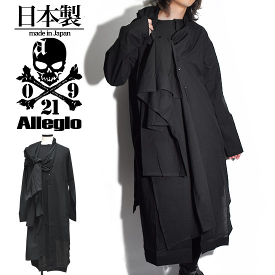 ロングシャツ メンズ シャツコート モードファッション ロング丈 ロングシャツ 長袖シャツ 変形 ロング丈シャツ ストール アシンメトリーシャツ 無地 ブラック 黒 V系 ビジュアル系 ホスト 大人 送料無料 秋 冬 新作 30代 40代 個性的 モード系 衣装 アレグロ allegro