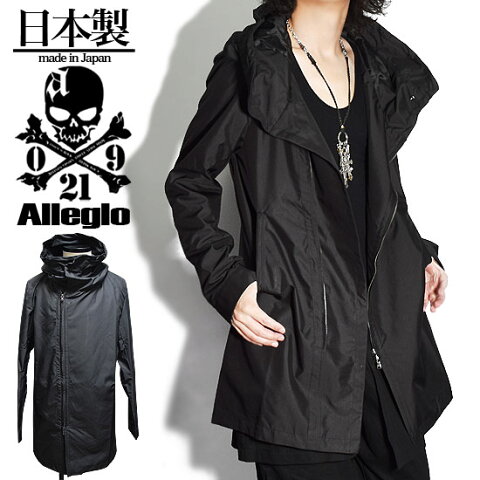 ボリュームネックコート メンズ ロングコート ライダースコート メンズファッション ロング丈コート 変形 ホワイト 白 お兄系 V系 ビジュアル系 ホスト 大人 送料無料 秋 冬 新作 個性的 モード系ファッション 衣装 アレグロ オリジナル ブランド ユニセックス レディース