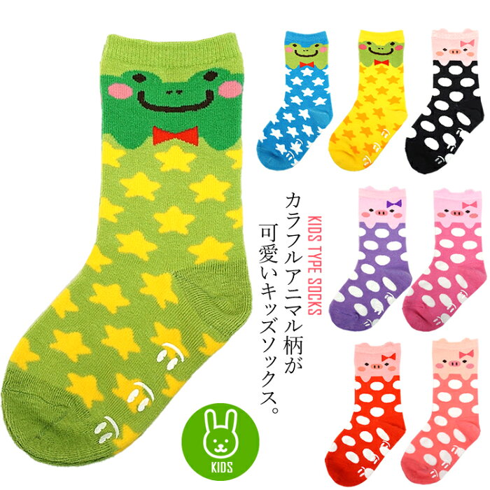 靴下 ソックス ショートソックス キッズ ジュニア 子供 キャラクター アニマル カエル ブタ【ネコポス対応】